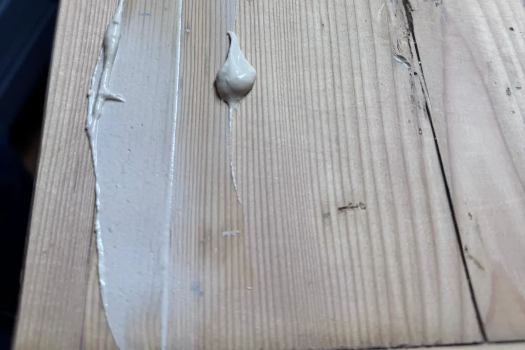 - Es mit Holzleim vermischt, bis eine cremige Paste entsteht